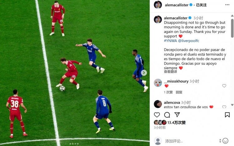 3月14日訊 在本輪歐冠,利物浦經(jīng)歷點球大戰(zhàn)不敵巴黎被淘汰。麥卡利斯特在社媒曬出一張面對巴黎3人合圍的照片,配文寫道:“很失望未能更進(jìn)一步,但是該停止遺憾了,是時候在周末再次出發(fā)。感謝大家的支持?!?/p> 本文標(biāo)簽: 足球 英超 利物浦