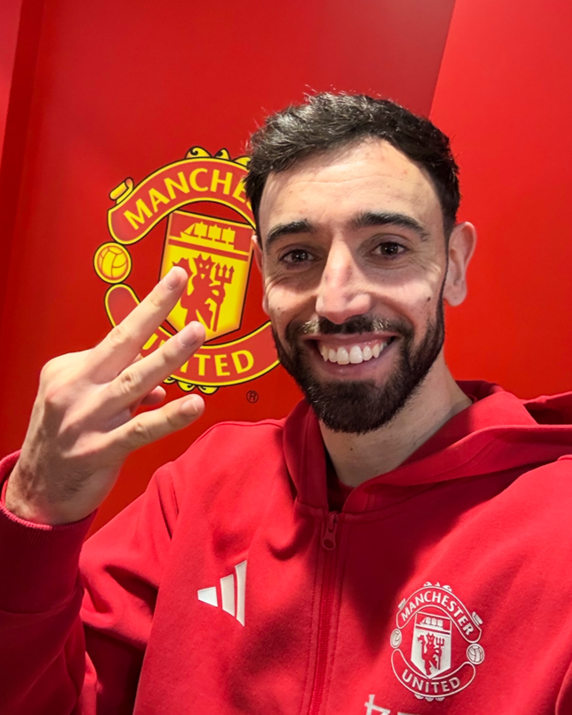 3月14日訊 曼聯(lián)在本輪歐聯(lián)杯4-1擊敗皇家社會(huì),成功挺進(jìn)八強(qiáng),B費(fèi)上演帽子戲法。歐聯(lián)杯官推也曬出了B費(fèi)賽后的自拍照,他也比出了“3”的手勢(shì)象征自己本場(chǎng)的帽子戲法。 本文標(biāo)簽: 足球 英超 曼聯(lián) 西甲 皇家社會(huì) B費(fèi) 歐聯(lián)杯