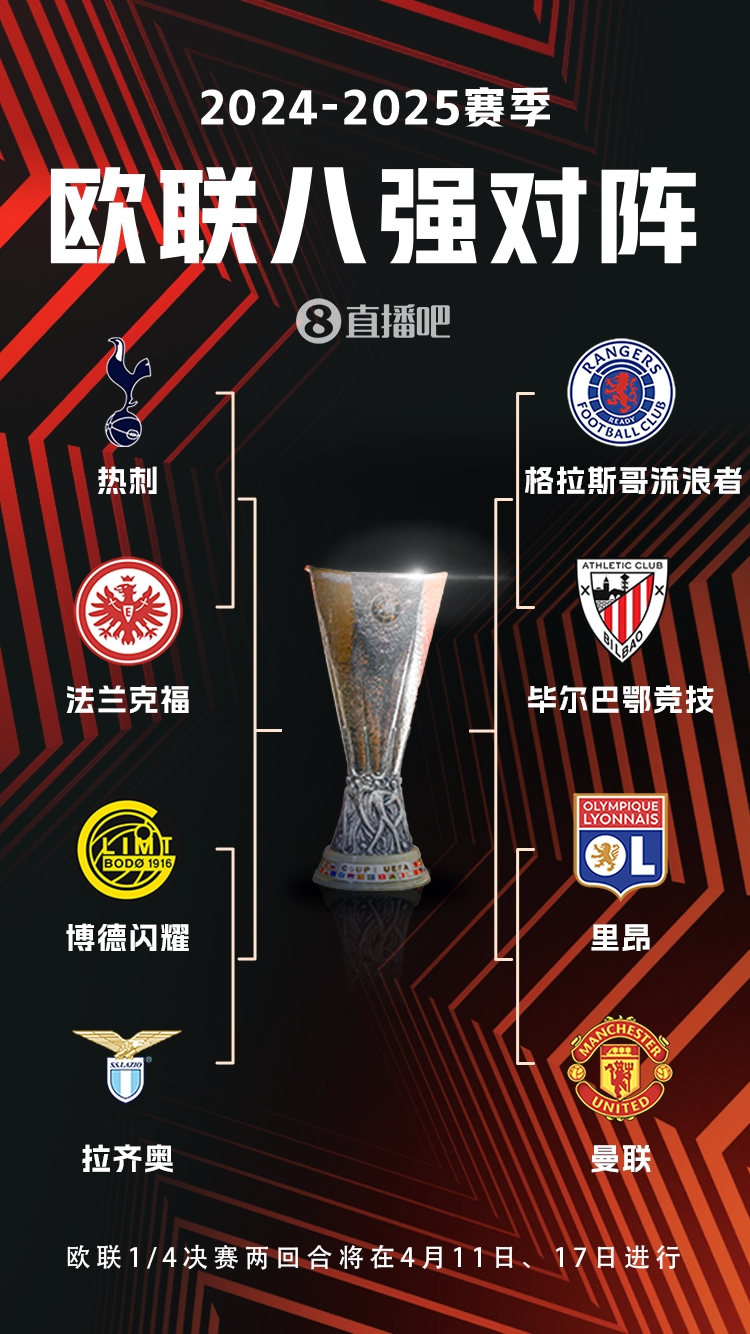 歐聯(lián)8強(qiáng):熱刺、法蘭克福、博德閃耀、拉齊奧、曼聯(lián)、里昂、畢爾巴鄂、流浪者