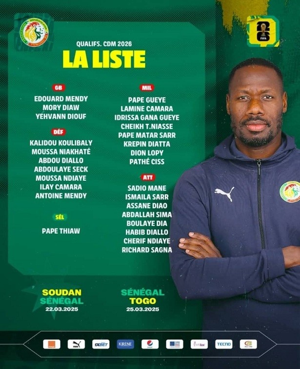 當(dāng)?shù)貢r(shí)間本周四,塞內(nèi)加爾國(guó)家隊(duì)公布了新一期大名單,備戰(zhàn)接下來對(duì)蘇丹(3月22日)和多哥(3月25日)的兩場(chǎng)世界杯非洲區(qū)預(yù)選賽。其中阿薩內(nèi)-迪奧首次入選塞內(nèi)加爾國(guó)家隊(duì)。