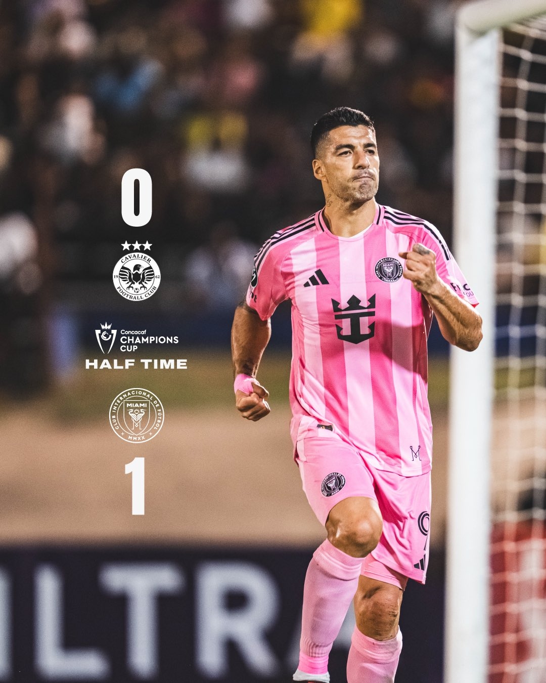 上半場比賽結(jié)束,邁阿密國際1-0卡瓦立爾。