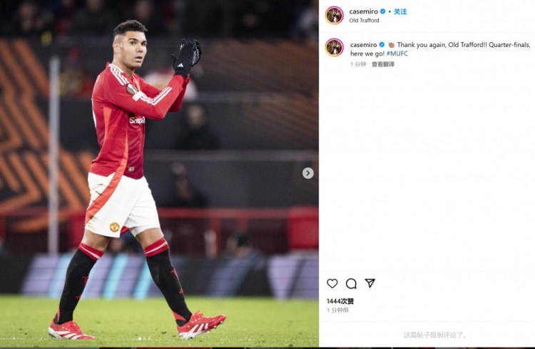 卡塞米羅也在被換下場時回報以掌聲,賽后還通過社媒曬出照片并配文:“再次感謝,老特拉福德!?。W聯(lián)杯八強(qiáng)戰(zhàn),我們來了!”