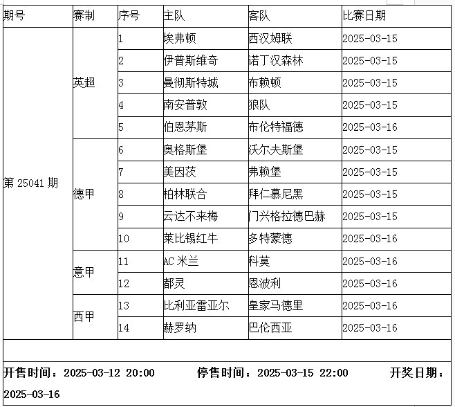 本周末的 傳足勝負(fù)彩第25041期中不乏焦點(diǎn):英超,曼城主場對陣布賴頓;德甲,拜仁慕尼黑客場出征柏林;意甲,AC米蘭主場迎戰(zhàn)科莫;西甲,皇馬做客對壘比利亞雷亞爾。