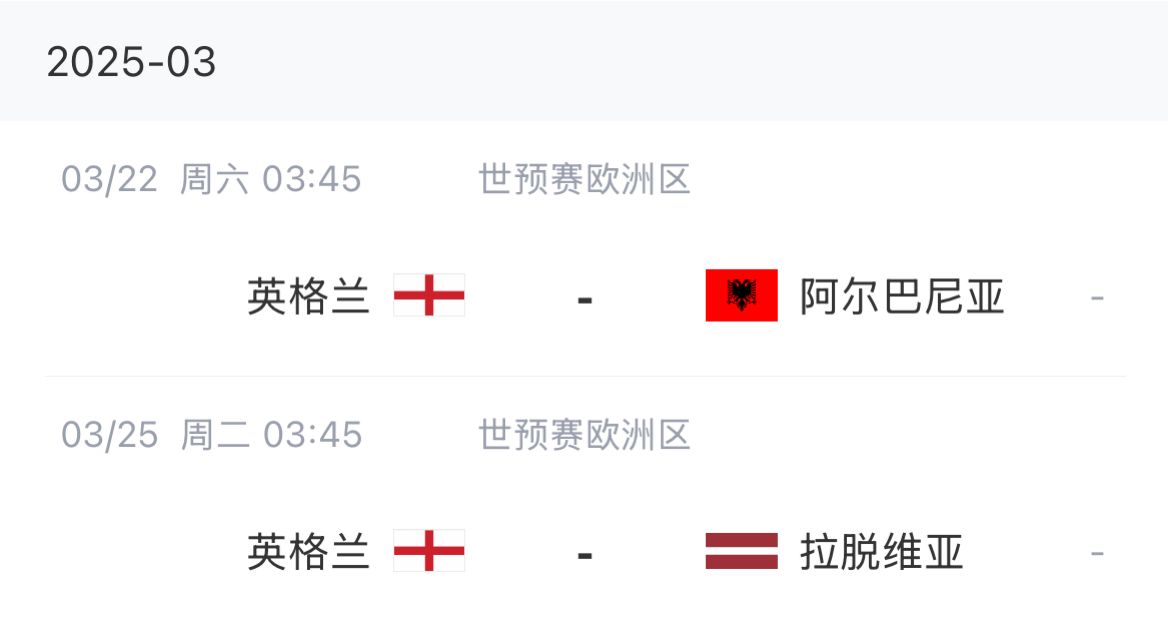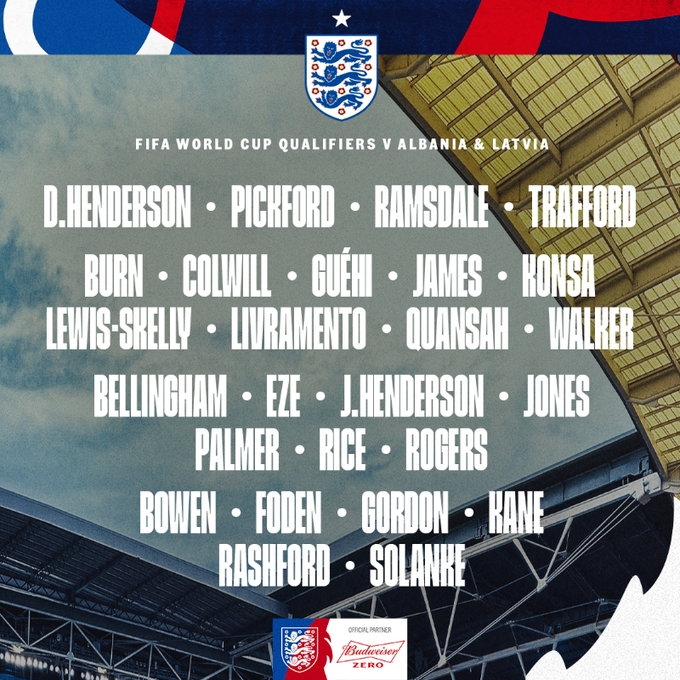 本期英格蘭隊(duì)將在3月底出戰(zhàn)兩場世預(yù)賽,對(duì)手分別是阿爾巴尼亞和拉脫維亞。