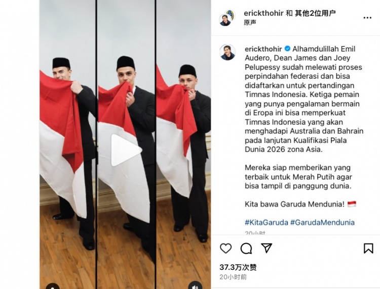 據(jù)印尼足協(xié)主席托希爾社媒消息,印尼足協(xié)已經(jīng)收到國際足聯(lián)正式來函,迪恩-詹姆斯、埃米爾-奧德羅、喬伊-佩盧佩已經(jīng)完成了會籍轉(zhuǎn)換,他們有可能為印尼隊(duì)出戰(zhàn)3月份的18強(qiáng)賽比賽。