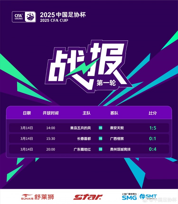 3月14日訊 2025年中國(guó)足協(xié)杯今日迎來(lái)第一輪的第一個(gè)比賽日,來(lái)自中乙的三支球隊(duì)泰安天貺、廣西恒宸和貴州筑城競(jìng)技率先晉級(jí)。
