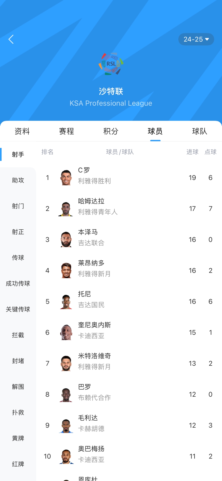 03月15日訊 沙特聯(lián)第25輪,利雅得勝利3-1擊敗卡赫胡德,C羅連場(chǎng)破門。沙特聯(lián)射手榜,40歲C羅19球領(lǐng)跑,37歲本澤馬遭遇4輪球荒,16球排第三,托尼16球、米特洛維奇13球、奧巴梅揚(yáng)11球。 本文標(biāo)簽: 足球 C羅 利雅得勝利 本澤馬