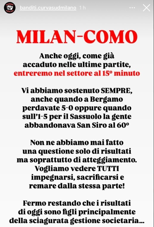 米蘭南看臺(tái)在社媒寫(xiě)道: