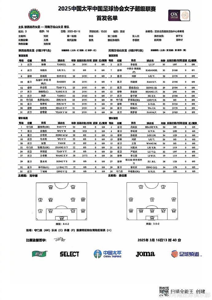 北京時(shí)間3月16日15:00,2025中國(guó)太平中國(guó)足球協(xié)會(huì)女子超級(jí)聯(lián)賽第三輪,河南萬仙山女足客場(chǎng)對(duì)陣陜西志丹女足。