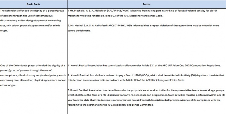 3月17日訊 2024年10月25日U17亞洲杯預選賽科威特對陣澳大利亞的比賽中,科威特球員米沙勒因種族歧視行為被亞足聯(lián)處罰。