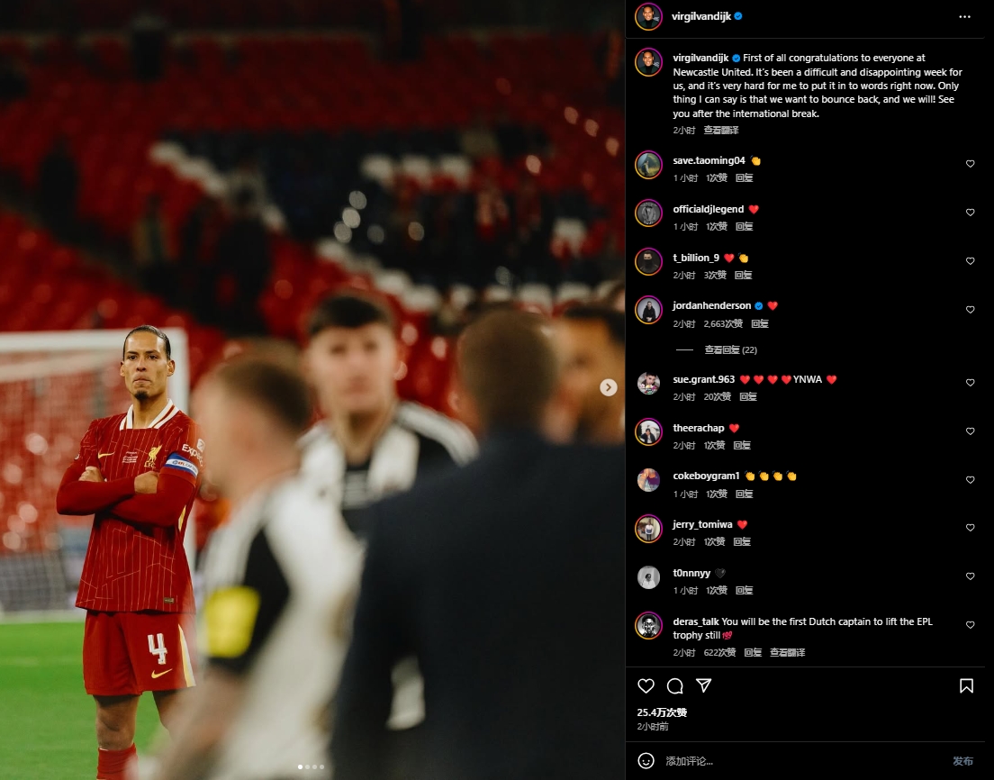 03月17日訊 凌晨英聯(lián)杯決賽利物浦1-2不敵紐卡斯?fàn)?,賽后范迪克接受采訪,談到了一周內(nèi)歐冠、聯(lián)賽杯均失利的話題。
