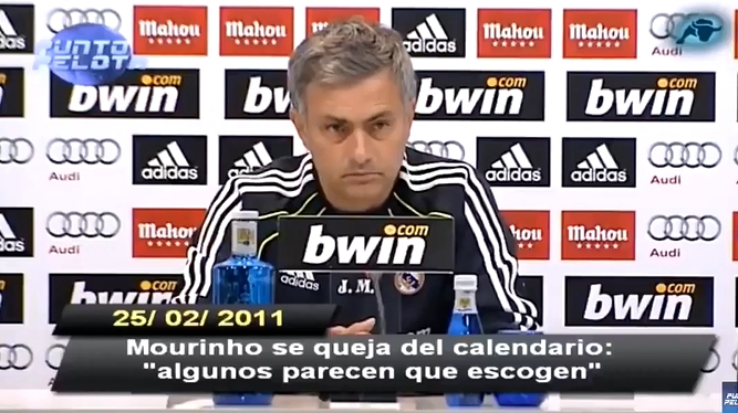 那場沖突的第一次戰(zhàn)斗發(fā)生在2011年2月底,這是穆里尼奧執(zhí)教皇家馬德里的第一個賽季?!斑@是一個由懂得自己在做什么的人制定的賽程。在歐洲比賽后,皇馬最正常的情況是周日比賽。但決定讓我們今天(周六)比賽的人——皇馬周二剛踢完歐冠八分之一決賽首回合對里昂——非常清楚他們在做什么。從聯(lián)賽一開始他們就在這么干。他們在我背后嘲笑我,”穆里尼奧在第25輪聯(lián)賽客場0-0戰(zhàn)平拉科魯尼亞后說道,當(dāng)時巴薩在積分榜上領(lǐng)先7分。
