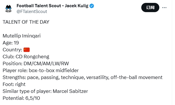 03月19日訊 王鈺棟昨日登上全球球探網(wǎng)站Football Talent Scout“今日天才”板塊,據(jù)博主“朗尼克”介紹,這是過(guò)去十年間第二個(gè)登上這個(gè)網(wǎng)站的中國(guó)球員。比王鈺棟更早登上Football Talent Scout的是蓉城青訓(xùn)出身的木塔力甫。