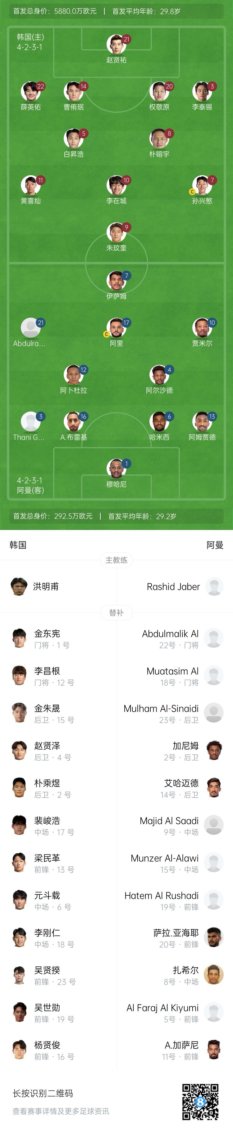 3月20日訊 北京時間3月20日19:00,世預(yù)賽亞洲區(qū)18強(qiáng)賽B組第7輪,韓國隊主場對陣阿曼隊,雙方首發(fā)已經(jīng)公布。目前在該小組積分榜,韓國隊14分領(lǐng)跑,阿曼隊6分排在第四位。