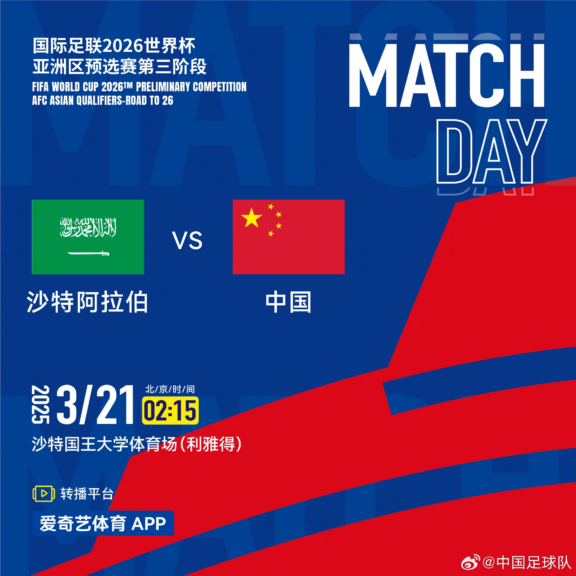 北京時間3月21日凌晨02:15,國際足聯(lián)2026世界杯亞洲區(qū)預(yù)選賽第七輪-中國國家男子足球隊將在利雅得沙特國王大學(xué)體育場對陣沙特阿拉伯國家男子足球隊。鎖定以下轉(zhuǎn)播平臺,一起為中國隊加油! 本文標(biāo)簽: 足球 國家隊 中國男足 中國足球 中超 轉(zhuǎn)載