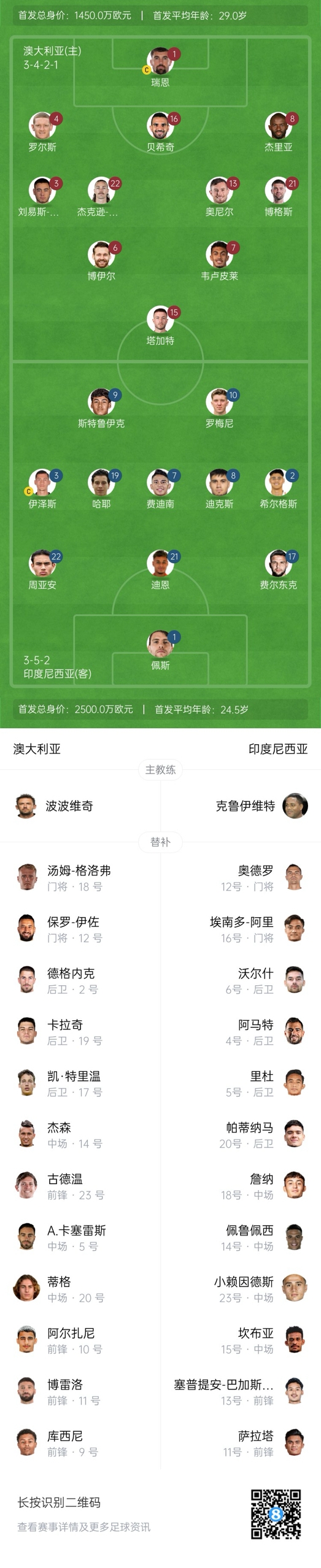目前澳大利亞暫時(shí)積7分排在積分榜次席,印尼與國足同積6分,澳大利亞在本月25日19點(diǎn)將客場對(duì)陣國足。