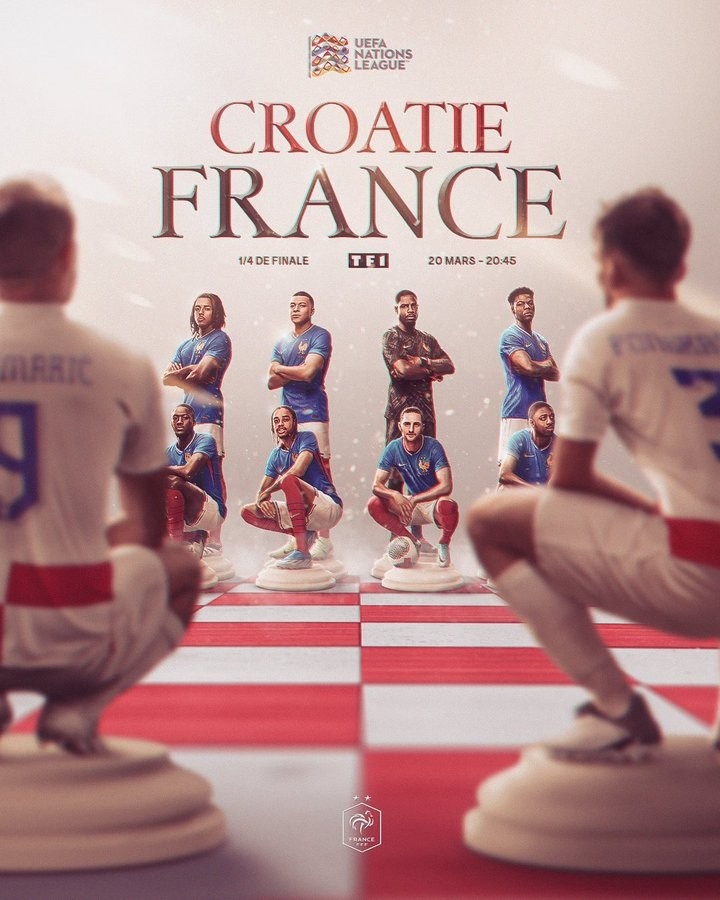3月20日訊 北京時間3月21日星期五凌晨3點45分,法國將在歐國聯(lián)1/4賽決賽首回合客場挑戰(zhàn)克羅地亞,法國隊官方今天曬出了海報,為比賽預(yù)熱。這次海報設(shè)計以國際象棋為靈感,姆巴佩、拉比奧特等多名球員出鏡。 本文標(biāo)簽: 足球 國家隊 法國 克羅地亞 姆巴佩