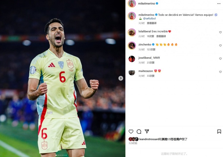 3月21日訊 在歐國聯(lián)1/4決賽首回合,西班牙2-2戰(zhàn)平荷蘭。本場比賽梅里諾替補(bǔ)登場在傷停補(bǔ)時階段打進(jìn)絕平進(jìn)球,這也是他繼對陣切爾西打進(jìn)制勝球后連場破門。賽后他也在社媒曬出慶祝照,配文寫道:“一切將在瓦倫西亞決定,讓我們一起加油!”次回合比賽將在3月24日移師西班牙主場進(jìn)行。 本文標(biāo)簽: 足球 英超 阿森納 國家隊 西班牙