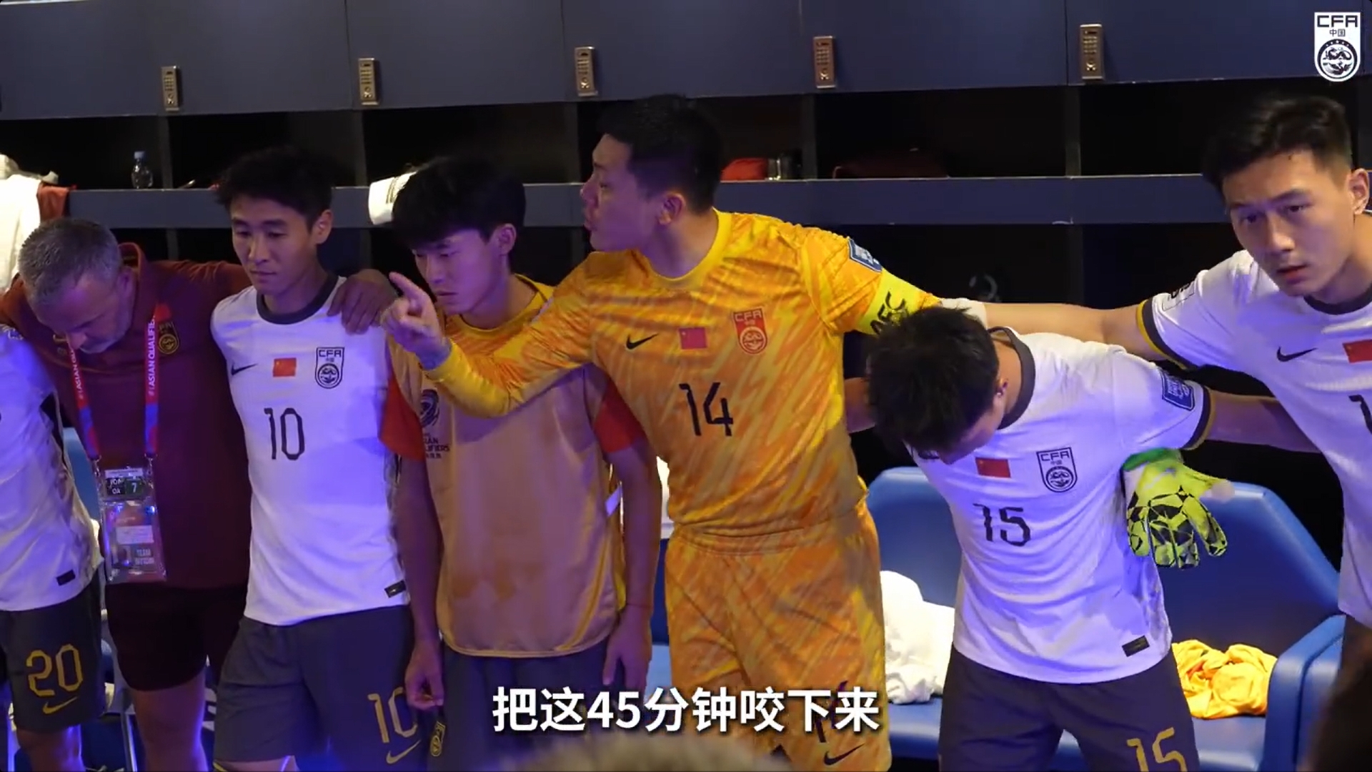 國足官方發(fā)布球隊0-1不敵沙特的微紀錄片,由于林良銘上半場最后階段吃到紅牌被罰下,國足下半場只能以十人應(yīng)戰(zhàn),隊長王大雷中場休息時也在更衣室鼓勵隊友。