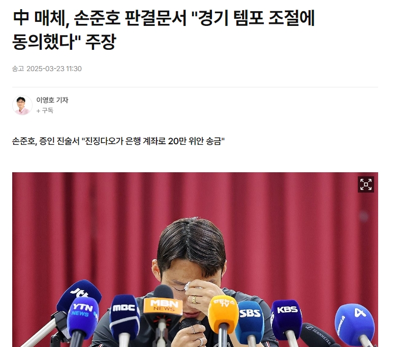 韓媒標(biāo)題:“我比平時更放松心態(tài)比賽”孫準(zhǔn)浩否認(rèn)操縱比賽,但在中國網(wǎng)絡(luò)上泄露的判決書中承認(rèn)了這一罪行。