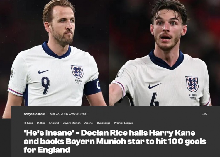 3月24日訊 英格蘭隊2-0戰(zhàn)勝阿爾巴尼亞的世預賽中,凱恩打進了代表三獅軍團的第70個進球。賴斯在談到凱恩時表示,凱恩一定能夠完成國家隊百球成就。