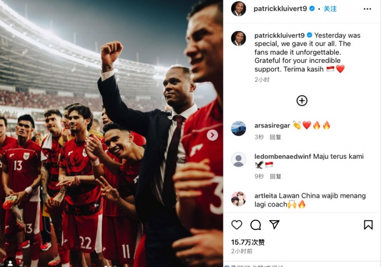 3月26日訊 18強賽C組第8輪,印尼隊主場1-0擊敗巴林隊,以9個積分暫居C組第4??唆斠辆S特迎來自己執(zhí)教印尼隊的首場勝利。今日克魯伊維特更新社媒,曬出了全隊圍在一起慶祝勝利的照片,并配文寫道:“昨天是特別的一天,我們在場上傾盡所有,球迷們的加油助威讓這晚更加難忘。謝謝你們令人振奮的支持,感謝(印尼語)?!?/p> 本文標(biāo)簽: 足球 國家隊 五洲 印度尼西亞 巴林