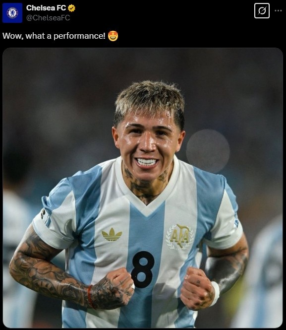3月26日訊 今天,阿根廷在世預(yù)賽4-1大勝巴西,切爾西官推發(fā)文稱贊了恩佐的表現(xiàn)。恩佐本場比賽貢獻(xiàn)一傳一射,賽后被TyC體育評為全隊(duì)最高分,切爾西官推則曬出球員照片,并寫道:“哇哦!多么出色的表現(xiàn)!” 本文標(biāo)簽: 足球 切爾西 英超