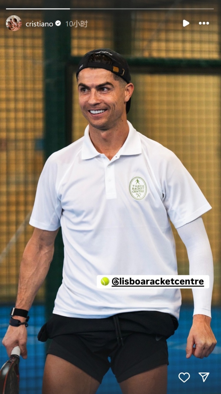 歐國聯(lián)1/4決賽次回合比賽,C羅打進(jìn)一球,葡萄牙加時(shí)5-2擊敗丹麥,兩回合總比分5-3晉級四強(qiáng),結(jié)束國家隊(duì)比賽任務(wù)的C羅迎來了難得的休閑時(shí)光,他在社交媒體上曬出自己打板式網(wǎng)球的照片。