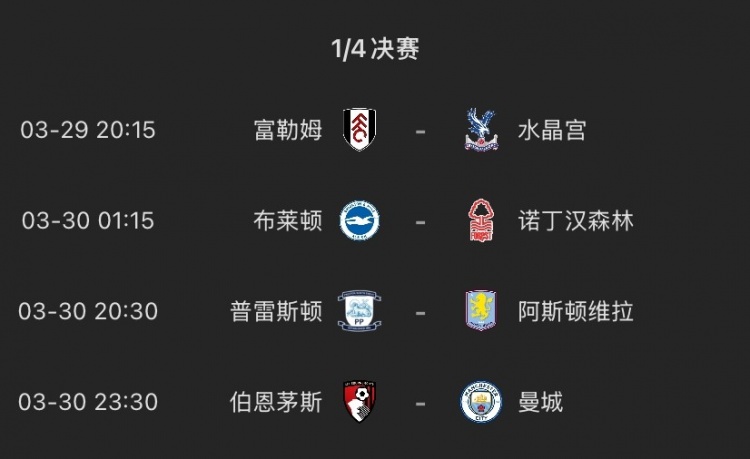 足總杯1/4決賽賽程↓