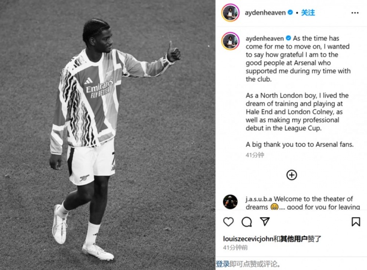 隨后,海文更新社媒告別阿森納,他寫道:“現(xiàn)在是我離開的時候了,我想說我非常感謝在阿森納遇到的好人們,他們在我效力俱樂部期間支持我。