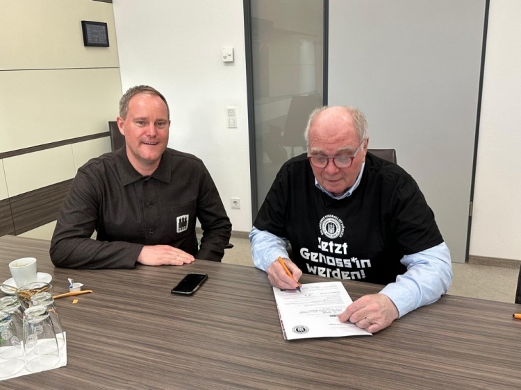 到目前為止,已有超過19000人加入了這家合作社,認(rèn)購股份總價(jià)值已超過2350萬歐元,現(xiàn)在成員也包括了烏利-赫內(nèi)斯。在奧克-戈特利希到訪慕尼黑期間,赫內(nèi)斯穿上了圣保利合作社的T恤并認(rèn)購了股份。就這樣,這位當(dāng)年的“拯救者”如今成為了一名同志。