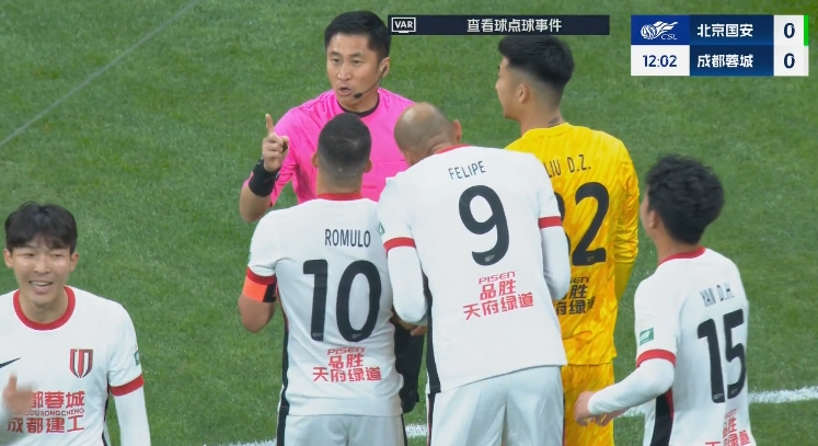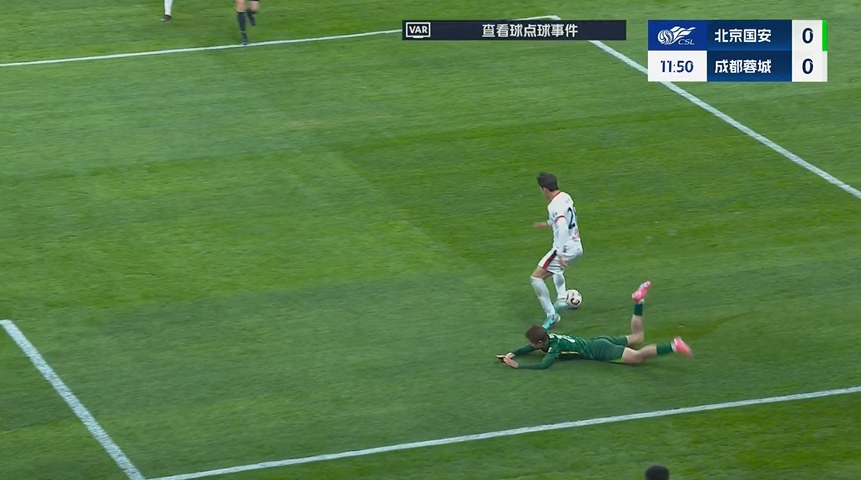 比賽第11分鐘,楊立瑜突破至禁區(qū)內(nèi)與元敏誠(chéng)接觸后倒地,馬寧果斷判罰點(diǎn)球!隨后VAR介入,馬寧去場(chǎng)邊查看后維持點(diǎn)球判罰。第18分鐘法比奧點(diǎn)射破門,國(guó)安1-0領(lǐng)先蓉城。