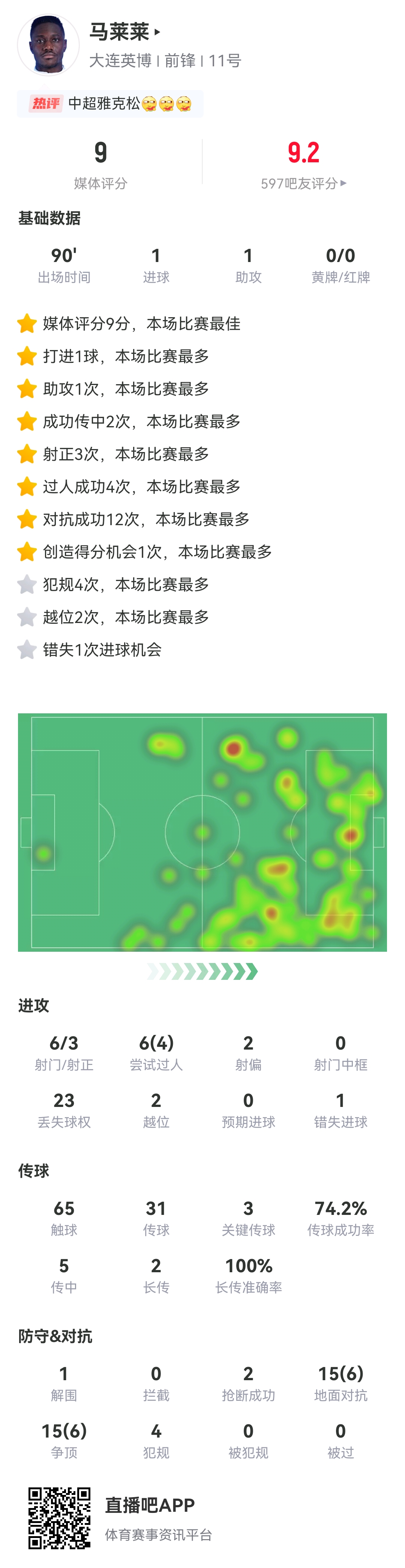 03月29日訊 中超第3輪,大連英博主場2-0戰(zhàn)勝長春亞泰,馬萊萊本場傳射收獲了在大連的處子球,也幫助球隊取得了隊史首場中超勝利。本場比賽馬萊萊在前場表現(xiàn)出色,多項數(shù)據(jù)本場比賽最佳。但同時,馬萊萊也有打丟單刀,甚至是失空門的表現(xiàn)。馬萊萊生吃對手↓馬萊萊失空門↓馬萊萊本場數(shù)據(jù)↓ 本文標簽: 足球 中超 中國足球 大連英博