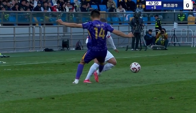 上半場(chǎng),天津津門(mén)虎1-0青島海牛。
