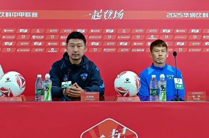 賽前,主教練劉智宇攜球員胡人天出席了賽前新聞發(fā)布會。