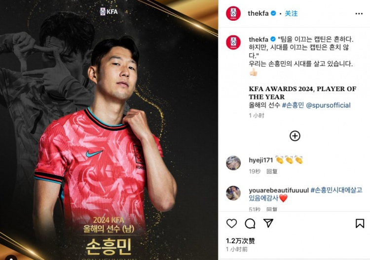 3月31日訊 韓國(guó)足協(xié)今日發(fā)布公告,公布了韓足協(xié)2024年度最佳球員得主,熱刺球星孫興慜當(dāng)選,這是他第8次獲得韓足協(xié)年度最佳球員獎(jiǎng)項(xiàng)。