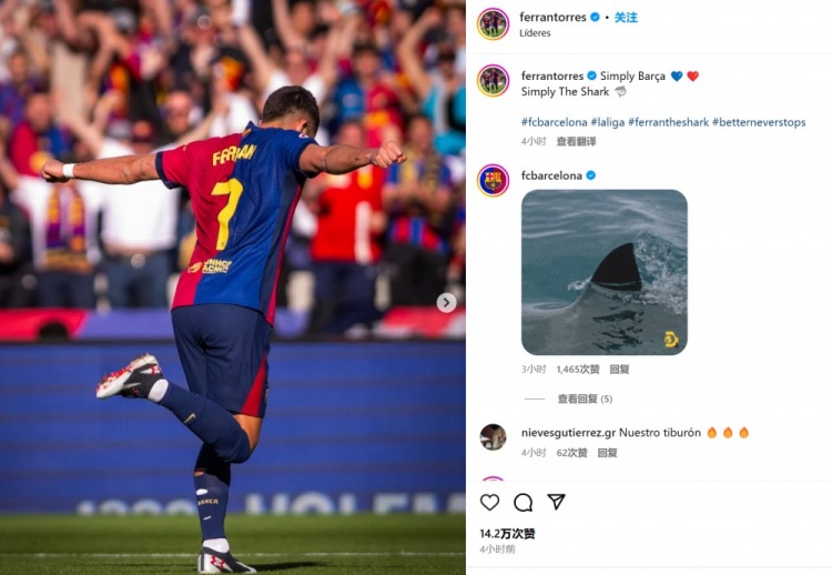 3月31日訊 巴薩在本輪西甲主場4-1擊敗赫羅納,費蘭替補建功鎖定勝局,也延續(xù)了近期的火熱狀態(tài)。第86分鐘,杰拉德-馬丁左路低平球傳中,費蘭跟進停球后推射破門。費蘭-托雷斯也在賽后通過社媒曬出自己的慶祝照,并配文:“依然巴薩!依然鯊魚!”自信而貪婪的鯊魚精神也是費蘭近年一直反復推崇強調(diào)的。 本文標簽: 足球 西甲 巴塞羅那 赫羅納