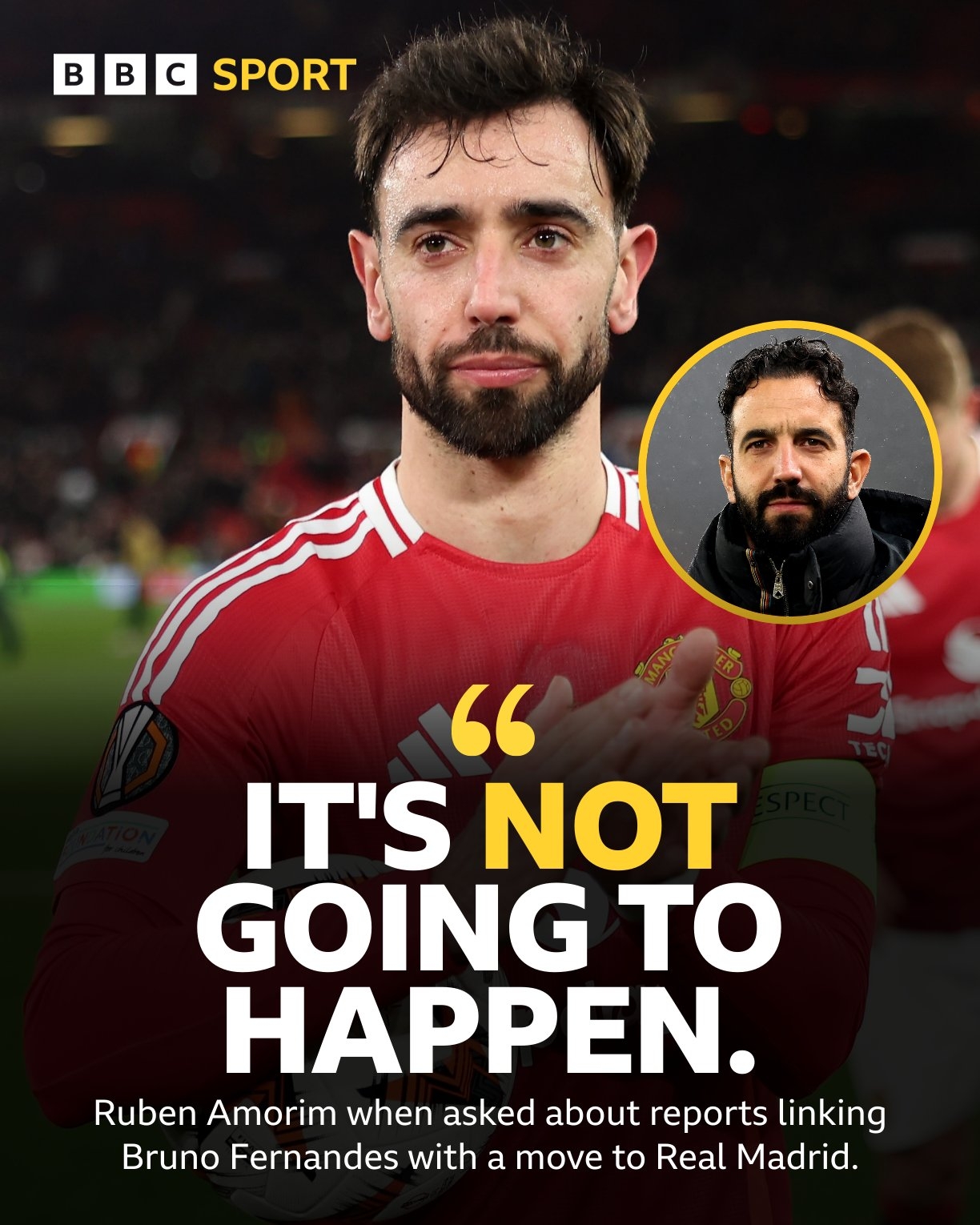 當(dāng)被問及周末媒體曝出的“皇馬有意B費(fèi)”消息時(shí),阿莫林回應(yīng)道:“不可能,這不會(huì)發(fā)生。他哪都不會(huì)去,我已經(jīng)告訴過他了。”