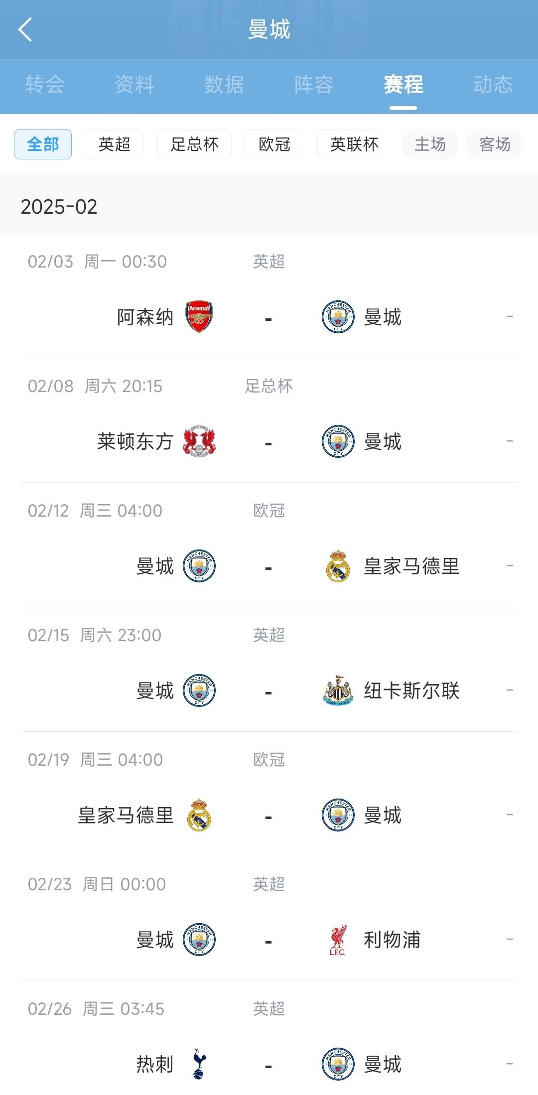 02月01日訊 北京時(shí)間2月3日0:30,曼城將對(duì)陣阿森納。2月份曼城24天內(nèi)將踢7場比賽,瓜迪奧拉出席賽前發(fā)布會(huì)時(shí)談到了球隊(duì)賽程。