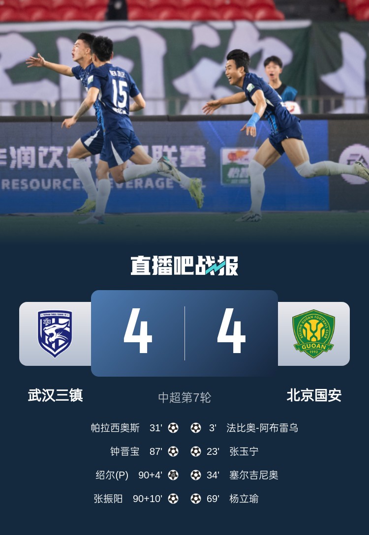 本場(chǎng)比賽最后13分鐘,三鎮(zhèn)連追3球,最終4-4絕平國(guó)安。對(duì)于這樣一場(chǎng)比賽,蘇東點(diǎn)評(píng)寫(xiě)道: