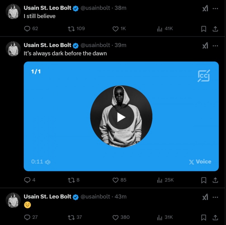 2月3日訊 本輪英超比賽中,曼聯(lián)0-2不敵水晶宮。賽后,知名曼聯(lián)球迷、短跑巨星博爾特更新動(dòng)態(tài),表示仍然對(duì)球隊(duì)有信心。博爾特發(fā)了一個(gè)心情沮喪的表情包,然后寫道:黎明前總是黑暗的,我仍然有信心。目前的英超積分榜中,曼聯(lián)24輪只拿到29分,跌至第13。 本文標(biāo)簽: 足球 英超 曼聯(lián)