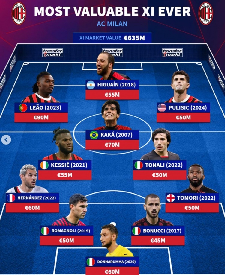 2月2日訊 意甲本輪迎來焦點戰(zhàn)米蘭德比,《轉(zhuǎn)會市場》也列出了兩隊的歷史球員德轉(zhuǎn)身價最貴陣容。