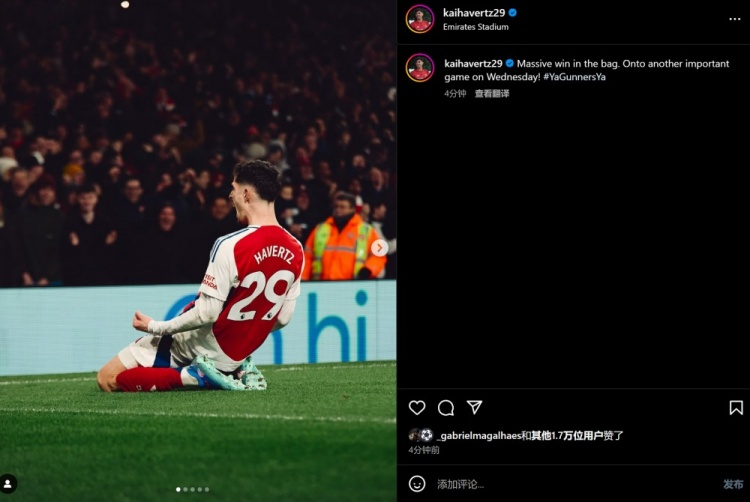 2月3日訊 本輪英超焦點(diǎn)戰(zhàn),阿森納主場5-1擊敗曼城。賽后,哈弗茨更新社媒,慶祝這場大勝。哈弗茨曬出自己進(jìn)球后滑跪慶祝的照片,并寫道:收獲一場大勝,現(xiàn)在迎接下一場重要的比賽!北京時間下周四凌晨4:00,阿森納將在聯(lián)賽杯半決賽次回合中對陣紐卡,首回合槍手0-2告負(fù)。 本文標(biāo)簽: 足球 英超 阿森納