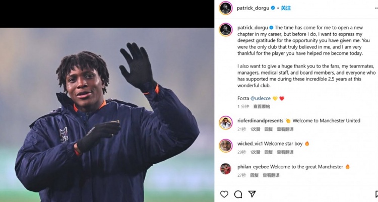 2月3日訊 曼聯(lián)在此前已經(jīng)官宣簽下翼衛(wèi)多古,后者也通過社媒發(fā)文告別老東家萊切。