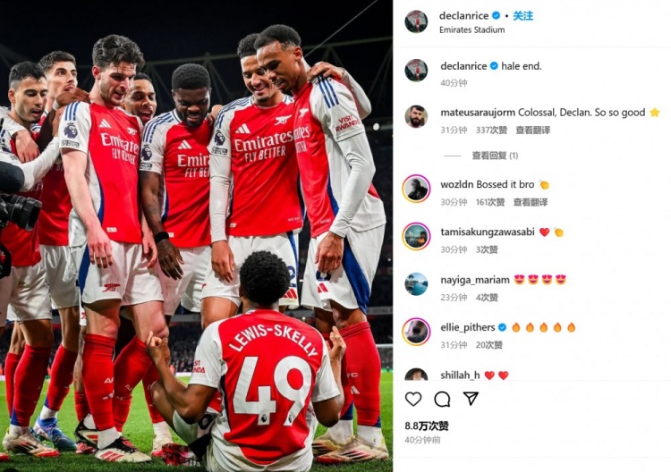 2月3日訊 阿森納在本輪英超主場迎戰(zhàn)老對手曼城,賴斯首發(fā)送出2次助攻。賴斯也在賽后通過社媒曬出自己和隊友們圍觀小將斯凱利打坐慶祝的照片,并配文:“黑爾恩德?!?/p>黑爾恩德正是阿森納的青訓(xùn)基地所在地,一代代的槍手天才都是從這里走出并邁入職業(yè)足壇。 本文標簽: 足球 英超 阿森納 曼城