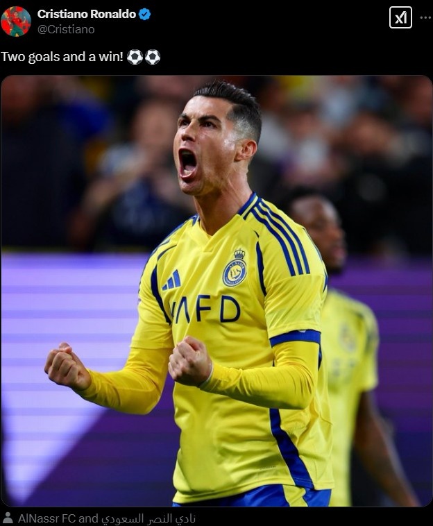 2月4日訊 今天凌晨,C羅梅開二度幫助利雅得勝利在亞冠4-0擊敗迪拜祈禱,賽后這位葡萄牙巨星在推特發(fā)文慶祝。C羅曬出了自己怒吼慶祝的照片,并配文:“兩個進球和一場勝利????” 本文標簽: 足球 利雅得勝利 亞冠精英 C羅 英超 西甲 意甲 五洲