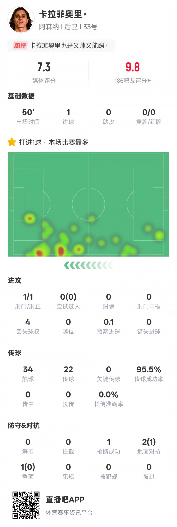 卡拉菲奧里本場(chǎng)數(shù)據(jù):