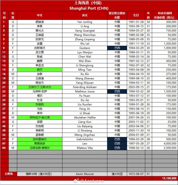 朱藝對報名名單進(jìn)行注解:1、綠色底紋代表對比第2報名窗口,此次報名窗口新增加的球員。2、亞冠精英聯(lián)賽規(guī)定不晚于3月31日前,只要名單不滿35人上限,仍允許補(bǔ)報2月4日后新轉(zhuǎn)入的球員。3、由于賽制不同,亞冠精英聯(lián)賽球衣號碼、報名人員不一定與中超完全相同,請注意區(qū)分。4、該名單將生效至本賽季亞冠精英聯(lián)賽結(jié)束。