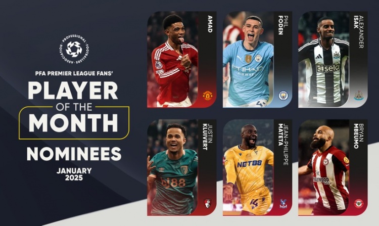 2月5日訊 PFA(英格蘭職業(yè)球員工會(huì))公布了英超1月最佳球員的候選名單,福登、阿瑪?shù)?、伊薩克等人入選。