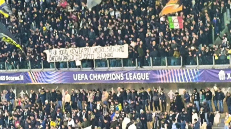 1月30日訊 意大利媒體《羅馬體育報(bào)》報(bào)道,在尤文圖斯歐冠主場(chǎng)同本菲卡的比賽中,斑馬球迷通過橫幅,還有合唱等形式,告別達(dá)尼洛。在效力尤文圖斯五年半后,達(dá)尼洛加盟弗拉門戈。